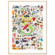 A collage poster made from vintage illustrations of English words that start with the letter E. Wonderful illustrations of such classic words as Equator, Excalibur and Echidna; not one, but two types of Elephant; minerals and plants, buildings and birds; at least one type of egg-laying mammal (and, indeed, at most)!