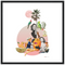 A collage depicting a potted palm tree, surrounded by by five women, three parrots, a caged bird, and a tiger. A pink moon hangs above. Guaranteed to break the ice at parties! full product details >>