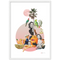 A collage depicting a potted palm tree, surrounded by by five women, three parrots, a caged bird, and a tiger. A pink moon hangs above. Guaranteed to break the ice at parties! full product details >>
